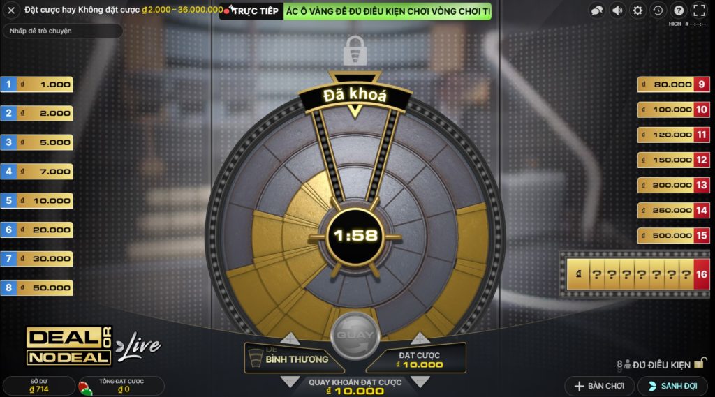 Trong suốt trò chơi, nhà cái sẽ đề nghị cung cấp một số tiền để mua lại chiếc vali của bạn và bạn sẽ phải đưa ra quyết định “Đặt cược” hoặc “Không đặt cược”. Nếu bạn từ chối và loại bỏ tất cả 15 cái vali thì sẽ sở hữu số tiền thưởng trong chiếc vali ban đầu. Việc chiến thắng hay không sẽ tùy thuộc vào việc người chơi thực hiện giao dịch hay từ chối giao dịch.