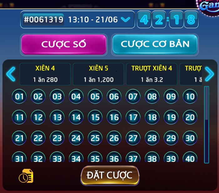 Đối với chơi Cược Số, người chơi sẽ lựa chọn số lượng con số tùy vào thể loại cược. Ví dụ đánh Xiên 2 (2 số giống nhau) thì bạn sẽ được đặt tối đa 2 số, xiên 3 thì đặt 3 số, tối đa là xiên 5.