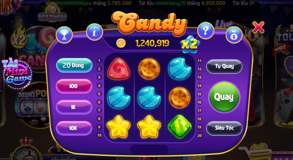 Với minigame slot Candy, bạn sẽ có cơ hội trúng nổ hũ với phần thưởng khá ngon lành, ít thì cũng vài trăm triệu đồng. Nếu thời gian giải trí có hạn thì “chơi tạm” tựa game slot này cũng là một ý hay.