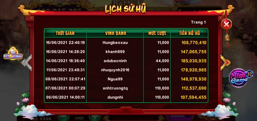 Bát Tiên Quá Hải còn là một trong những game có tỷ lệ nổ hũ cao nhất. Cứ vài ba ngày là lại có một người nổ cái hũ cả trăm triệu đồng, cá biệt còn có tận 2 cái hũ trăm triệu nổ trong ngày luôn. Nếu muốn test vận may thì đây là trò chơi rất thích hợp.