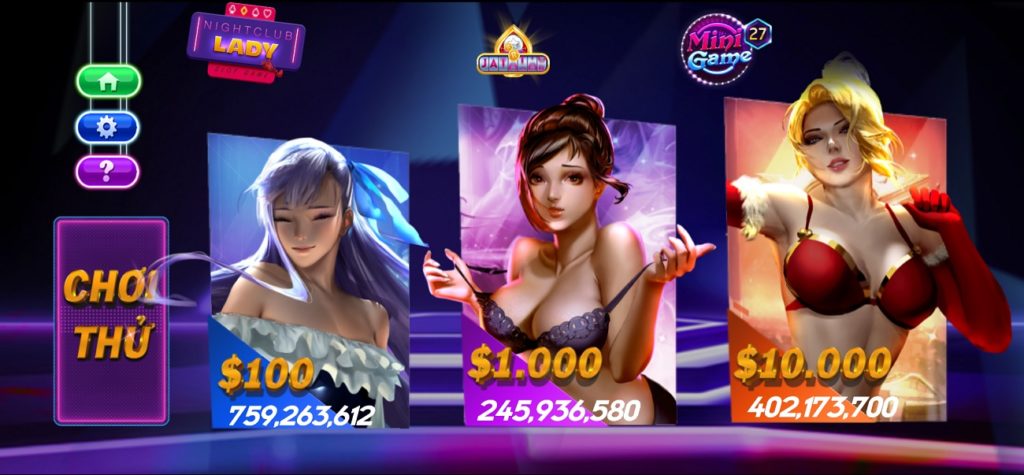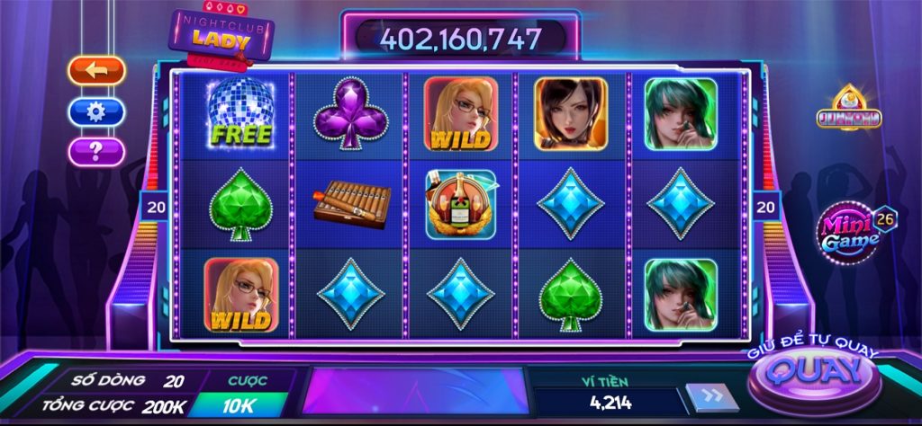Bên cạnh đó chủ đề của game nổ hũ Night Club Lady cũng lấy hình ảnh của những cô gái xinh đẹp, gầm cao máy thoáng khế mẩy đung đưa theo điệu nhạc đảm bảo sẽ làm cho anh em đứng ngồi không yên. Thậm chí nếu được chơi minigame tét đít, bạn sẽ có cơ hội “vẩy khế” các em 3 cái và chờ đón giải thưởng lên đến 1,200 lần mức cược.